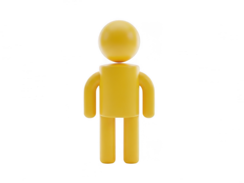 Minimalist yellow human figure standing alone isolated on transparent background