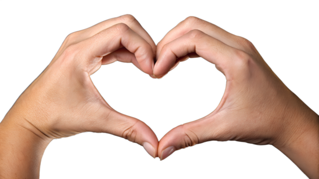 Human hands forming a heart shape, cut out, isolated on transparent background.