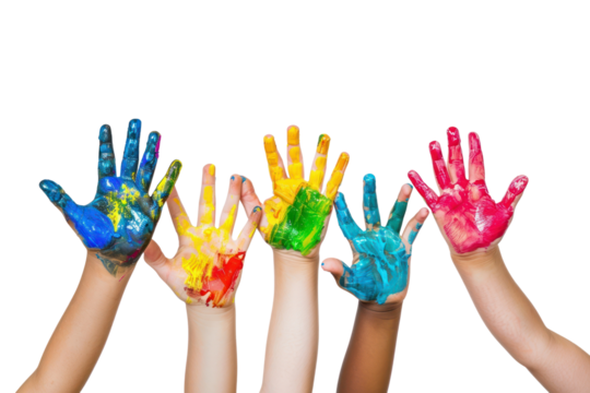 Diverse human hands forming circle on isolated on a transparent background multiracial
