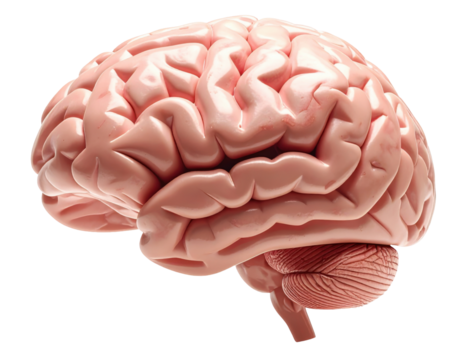 Human brain model isolated on transparent background, anatomical representation of the central nervous system for medical education