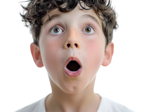 Studio portrait of upper half of a man showing facial expressions isolated on transparent png background. Human emotions, Face expressions.