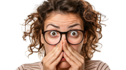 Close-up portrait of a young Black woman expressing deep surprise with wide eyes and open mouth