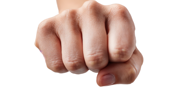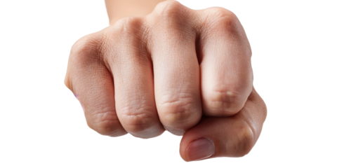 Close up of human clenched fist against transparent background