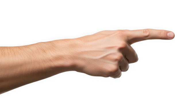 A right hand with a forefinger pointing straight ahead on a transparent background