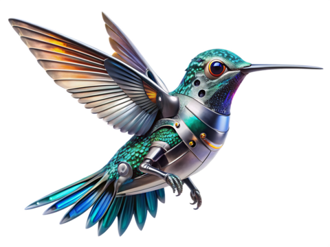 robot hummingbird  isolated on white background PNG ai generated