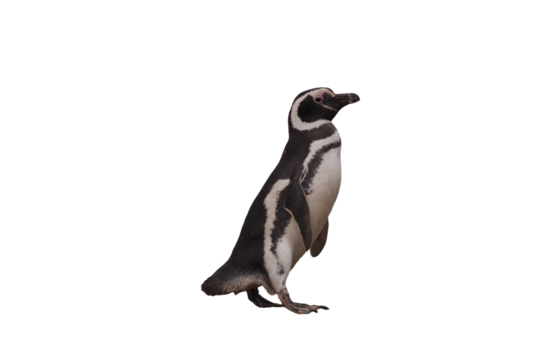 Penguin, photography, natural light, isolated, white background or transparent background.