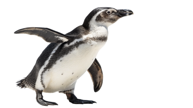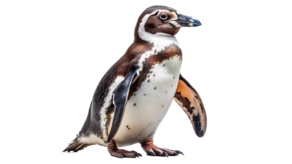 Humboldt penguin standing, cut out on PNG, isolated on white background. AI GENERATED.