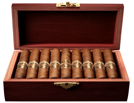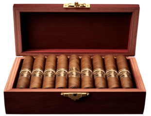 Open Wooden Humidor Filled with Cigars on transparent background.PNG