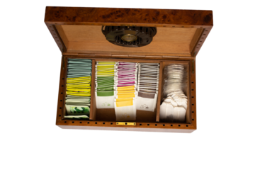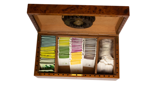 wooden box with humidor filled with tea of different flavors and colors oak root wood cigar box with transparent background png with space for text