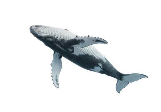 Large humpback whale swimming underwater with transparent background, perfect for marine life projects