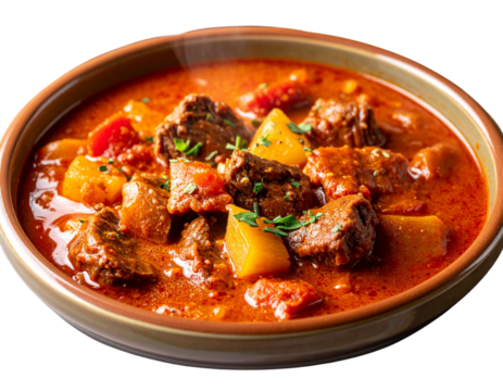 Homemade Hungarian Goulash Stew Isolated on White and Transparent Background