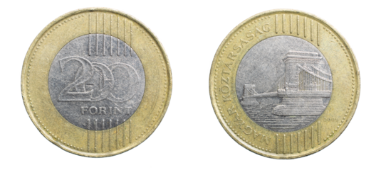 two hundred Hungarian forint coin isolated on white background
