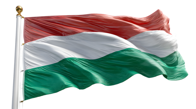 Flowing Hungarian flag waving gracefully against a clear background, symbolizing national pride and identity