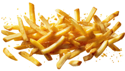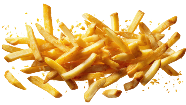 Golden brown, crispy fried potato strips piled high