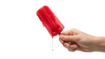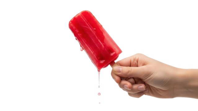 Hand Holds Melting Red Popsicle With Dripping Liquid