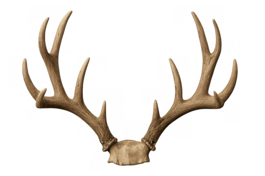 Deer antlers presenting a hunting trophy. Concept displaying wildlife, nature, and successful hunting. Transparent background