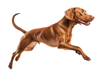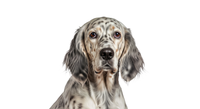 Elegant German Spaniel standing sideways, gazing off against transparent backdrop