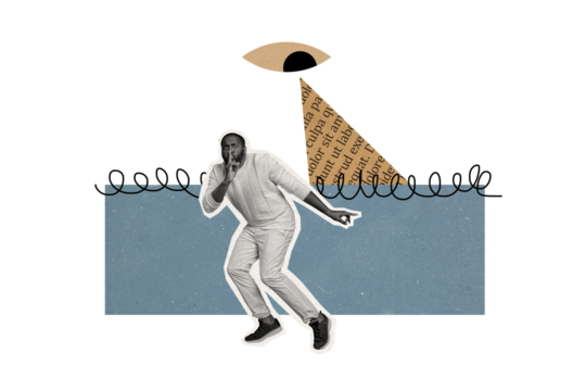 Composite photo collage of scared american man show shh gesture ufo plate eyeball imitation alien invaders isolated on painted background