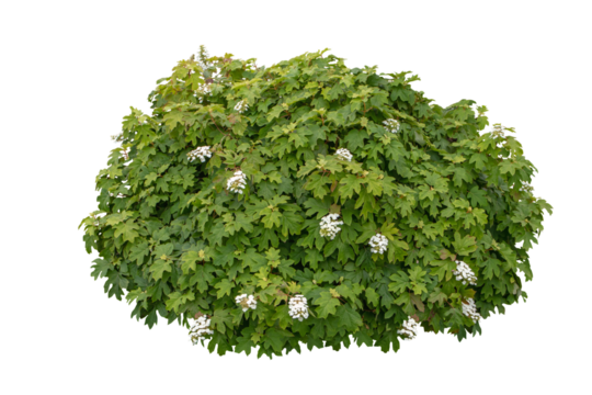 Oakleaf hydrangea bush with white flowers isolated transparent png