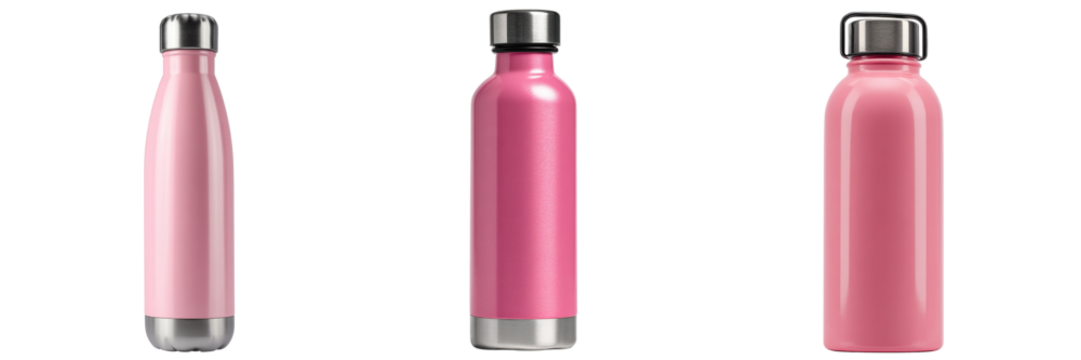Assorted blue water bottles in various designs modern hydration containers transparent background