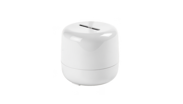 Closeup of a white coolmist humidifier releasing vapor on a clean white background highlighting sleek design ideal for skin hydration and indoor air comfort.