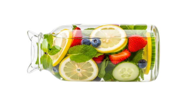 Refreshing fruit infused water in a glass jar promoting wellness and natural hydration for a healthy lifestyle