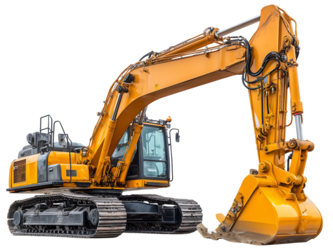 Yellow excavator isolated on transparent background