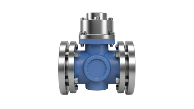 Industrial Flanged Valve with Blue Body and Silver Accents