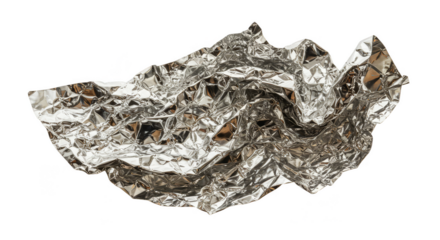 Crumpled Shiny Silver Aluminum Foil Texture Isolated Transparent
