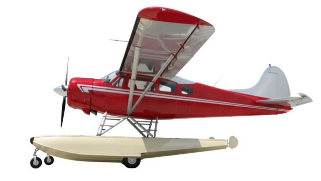 red seaplane with floats, showcasing vintage design and propeller, isolated on transparency background. This aircraft represents adventure and exploration over water