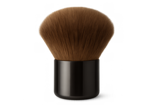 A professional cosmetic makeup brush set with various applicators for foundation, powder, and eyeshadow, isolated on a clean white background