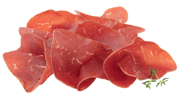 Salami, cooked ham, and iberian ham slices layering transparently, creating versatile culinary background for graphic design needs