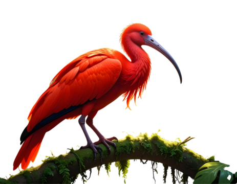 Scarlet Ibis on Branch with Jungle Vines PNG