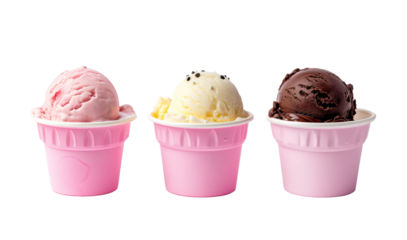 3 different ice creams next to eachother in pink tubs