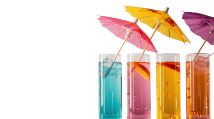 Tropical cocktail with citrus and umbrella in transparent glass