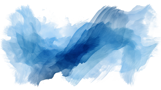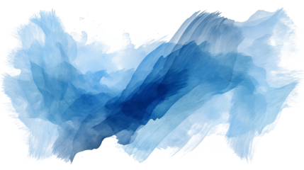 Abstract blue paint brush strokes in watercolor isolated on transparent background, ideal for artistic projects, digital designs, and creative visuals in PNG format