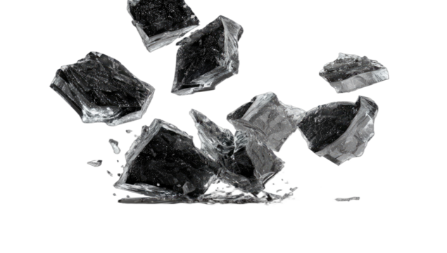 Collection of shattered glass fragments isolated on transparent background. Set of shattered glass fragments isolated on white background.
