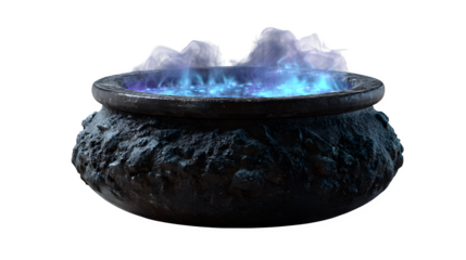 Witch cauldron centerpiece with smoke effect and glowing base, isolated on white background