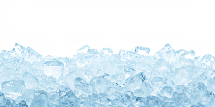 Crushed ice cubes scattered on a flat surface, isolated on a white background