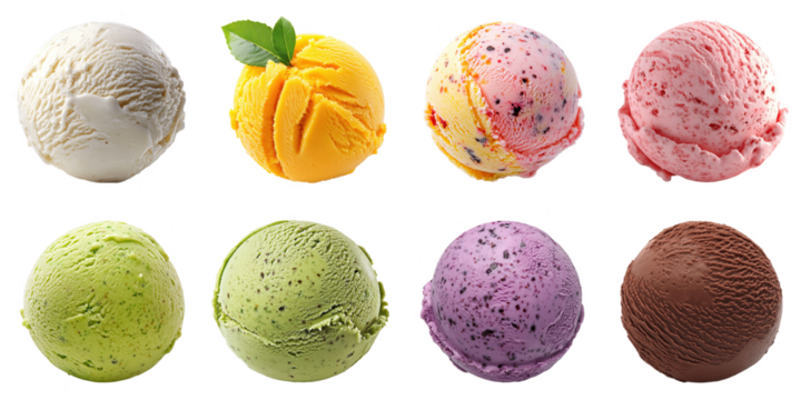 Set of ice cream in a white bowl top view isolated on a transparent background