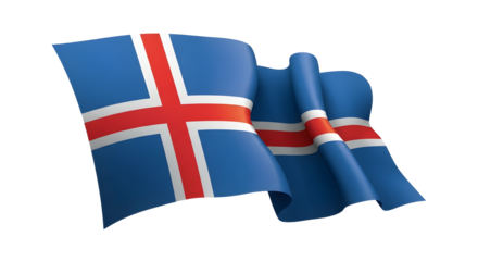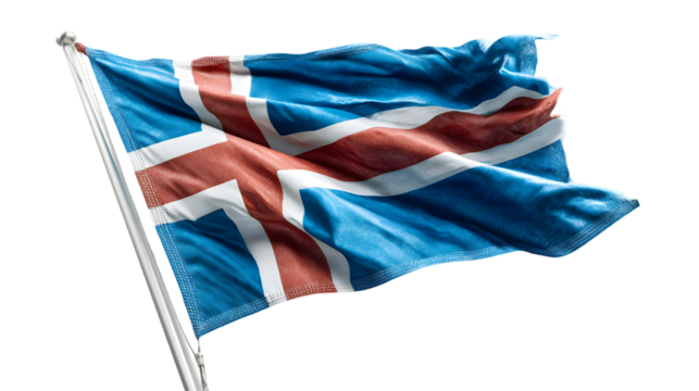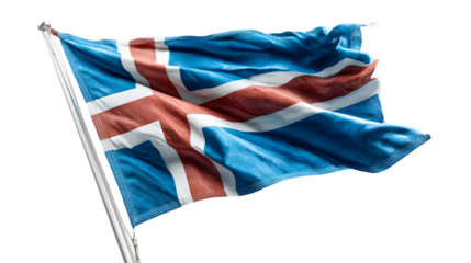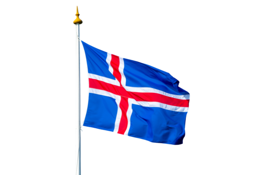 Photo of an Iceland flag on a pole floating in the wind isolated on white transparent background, png file