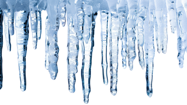 ice, icicle, winter, cold, water, frost, frozen, Winter PNG with frost, snow and ice texture, blue crystal icicle design for cold Christmas background, isolated seasonal nature and frozen roof