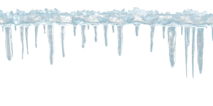 Row of sharp icicles hanging from a glacier on transparent background, creating a cold and icy atmosphere