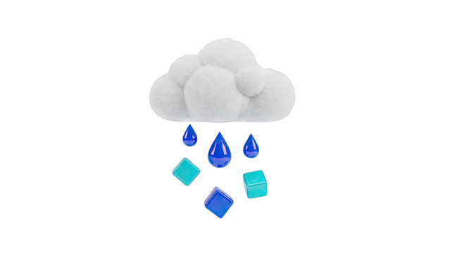 3D Rendered Cloud with Rain Drops and Geometric Shapes