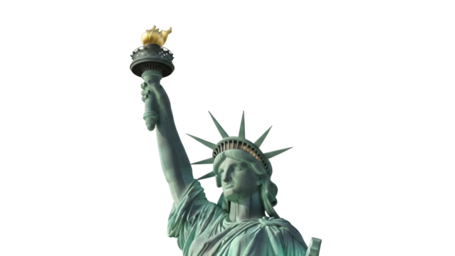 Statue of Liberty isolated PNG on transparent background, iconic American landmark with torch and crown, symbol of freedom and democracy