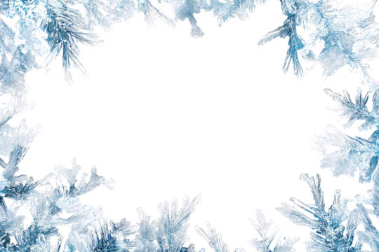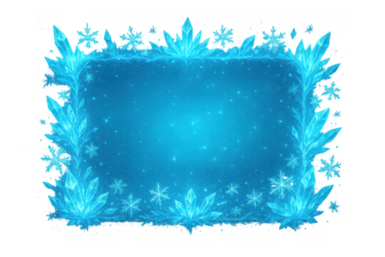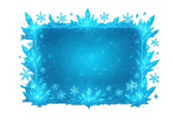 Ice crystal and snowflake frame creating a cold winter border with sparkling snow effect on transparent background