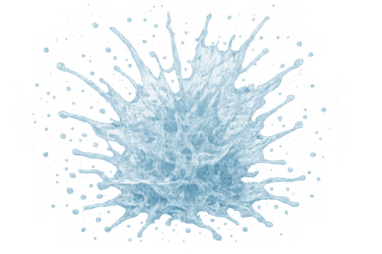 Fresh water splashing creating a burst of liquid drops and ripples, clear icy aqua background transparent
