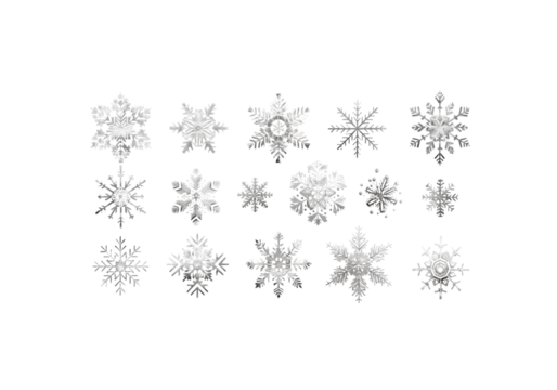 Snowflake ornament collection featuring various icy blue and white snowflake designs isolated on black background. Elegant winter and Christmas decorative
