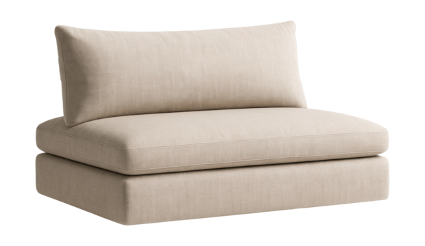 Armless low sofa with a sleek linen cover, ideal for a minimalist bedroom nook.