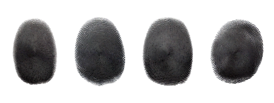 Set of Black Fingerprint Scans isolated on transparent or white background